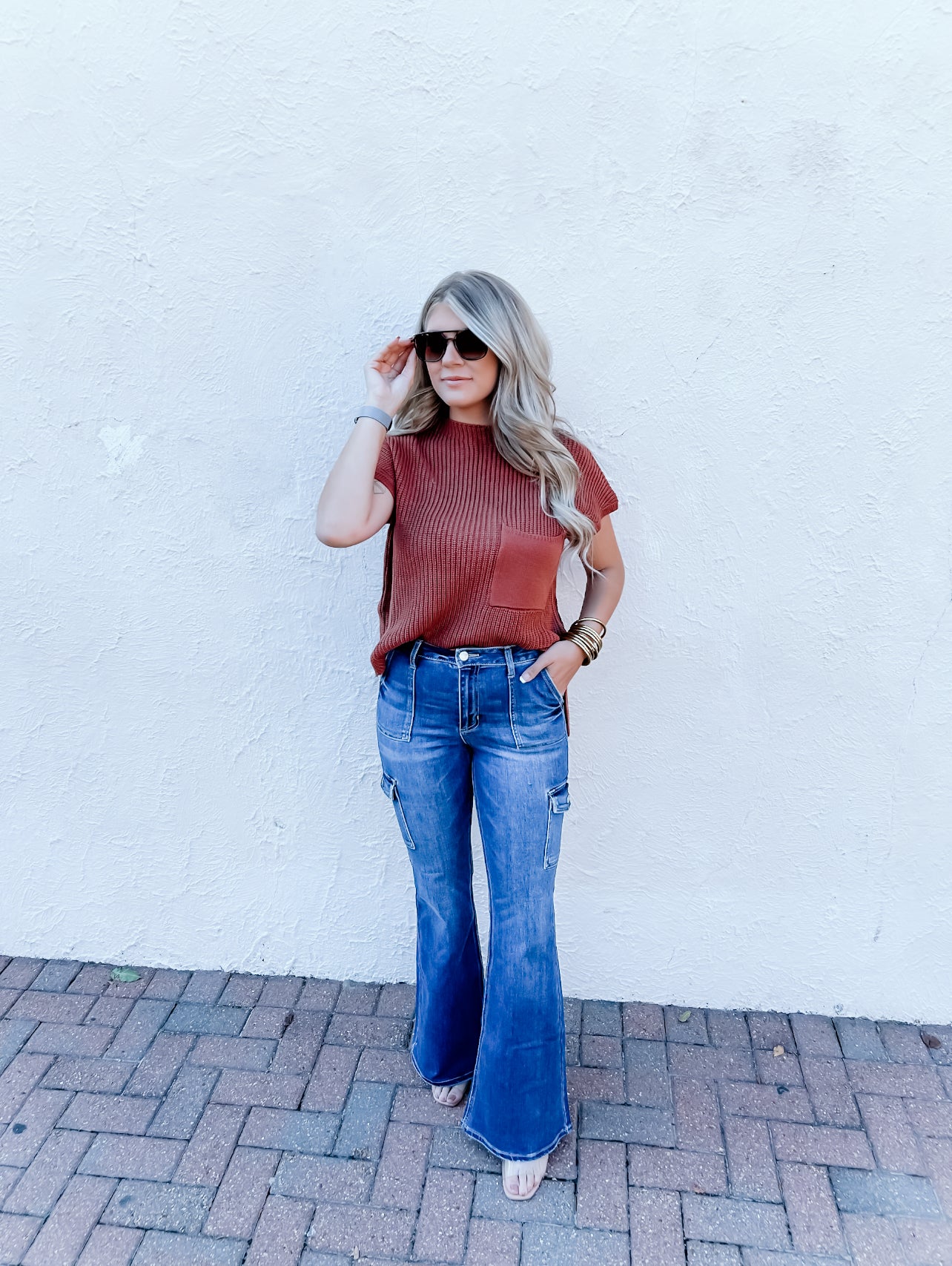 The High-Rise Flare Jeans feature cargo detail - a perfect blend of style and utility,
